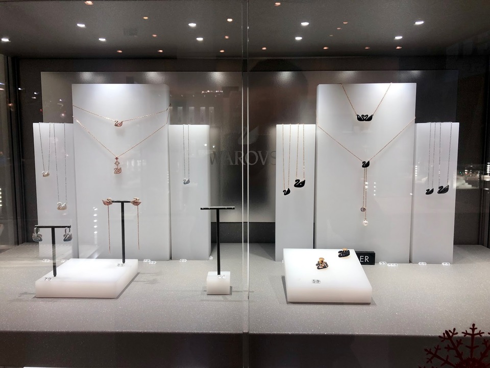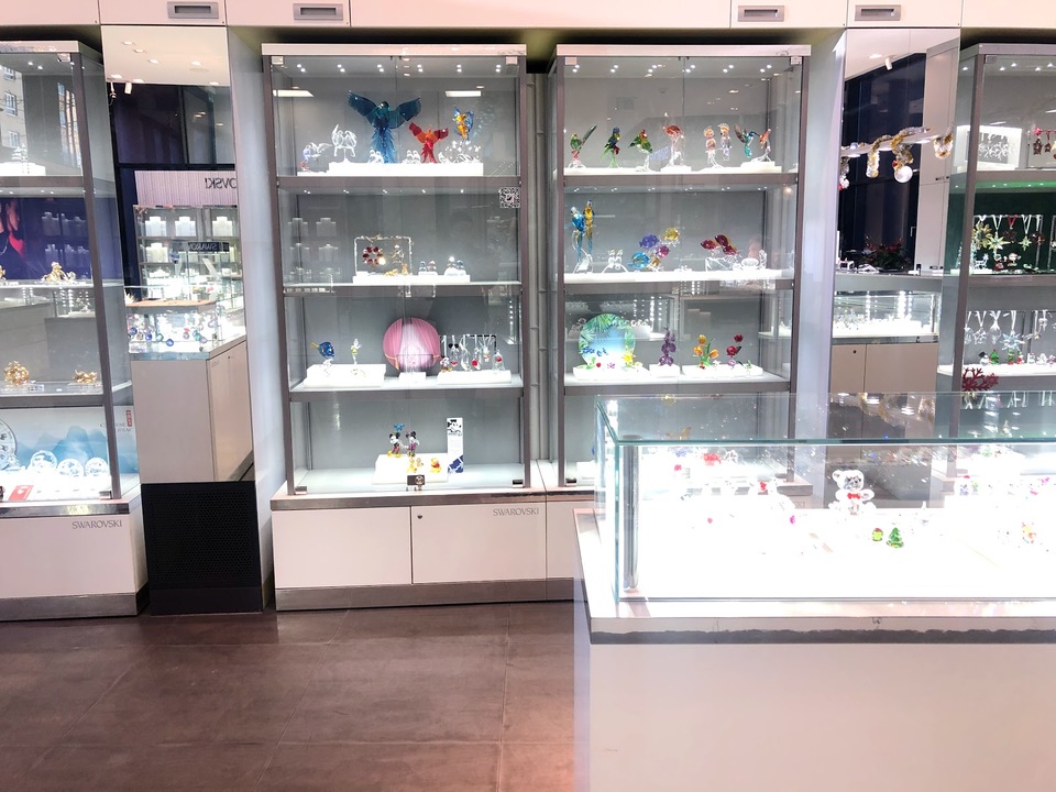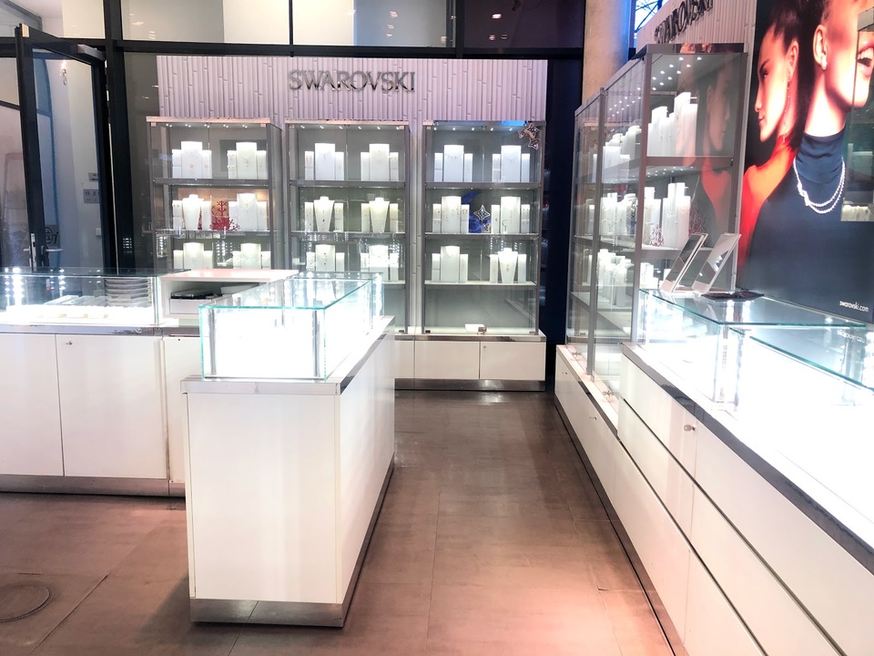 Swarovski im ersten Stock, Longines Radar Tissot CK Zwilling/LAMY/OLIVER WEBER Kristall im zweiten Stock Chopin Earl Blancpain im dritten Stock